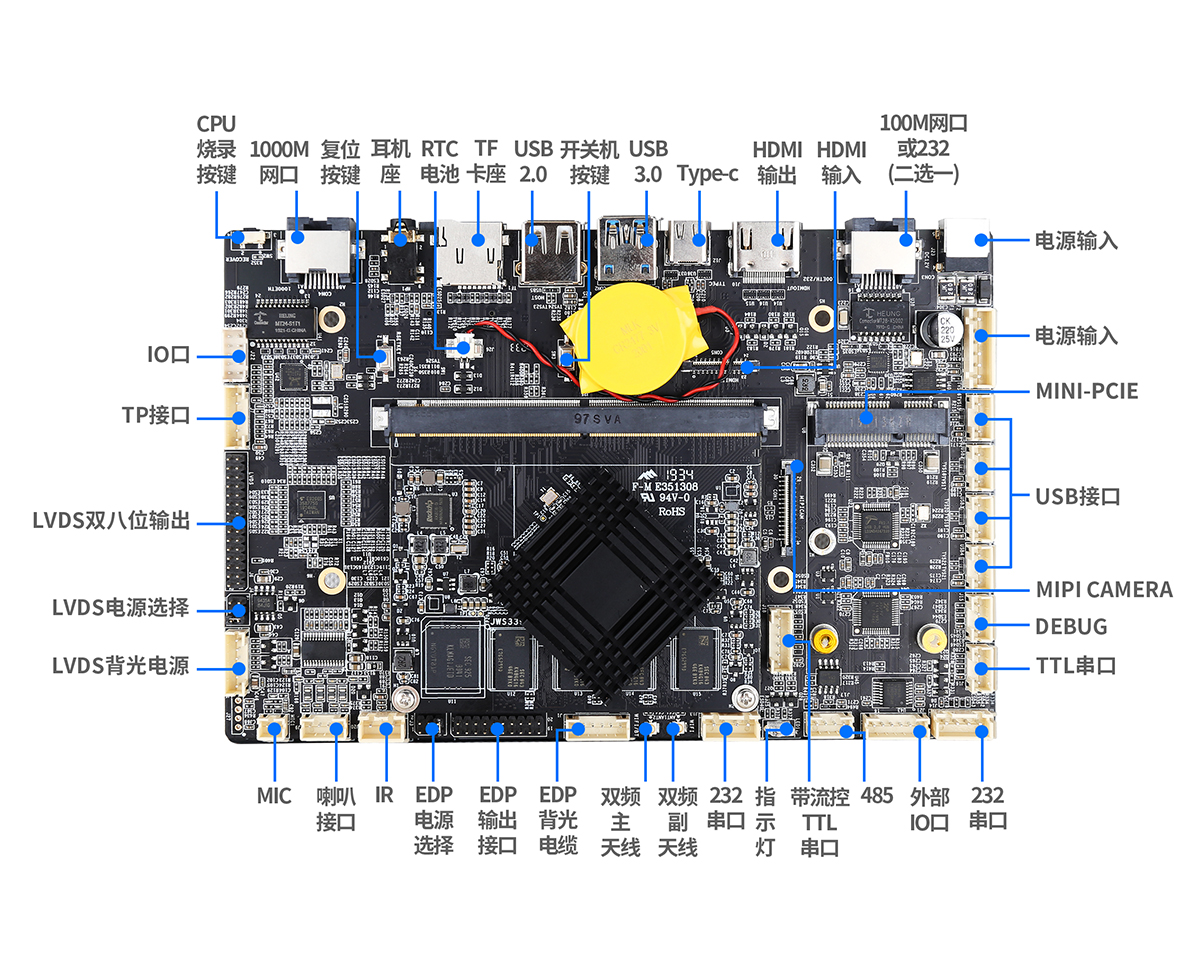 多種顯示輸出接口 豐富的擴展接口 支持Android系統(tǒng)定制 支持多種主流觸摸屏 64位高性能CPU 多種網(wǎng)絡接口,支持上網(wǎng)和通話