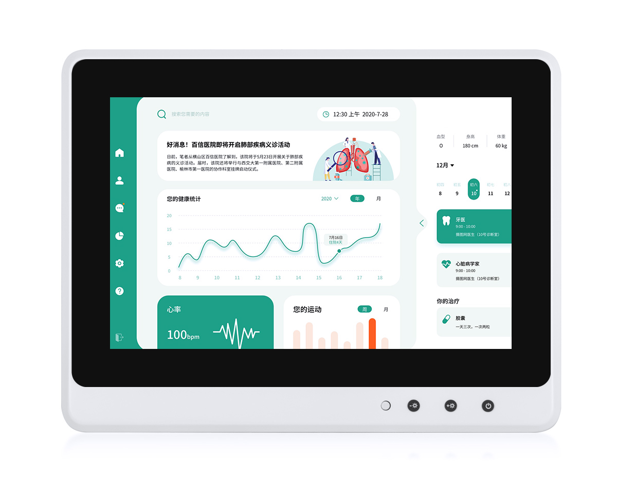 1、車載醫療電腦一體機 2、專為醫療移動推車防振、抗干擾、防靜電、防塵防水等要求而打造 3、采用J6412四核芯片配置,內部抗干擾布局,杜絕灰屏、屏幕顆粒現象 4、適應醫院強電磁環境,能滿足醫療移動推車的各種需求,提供多種工作效能 5、支持多種安裝方式(懸臂式、壁掛式、吊臂式、球頭支架式) 6、自主研發工業級X86架構主板,性能突出 7、接口豐富齊全 8、兼容性好,支持99%的醫療行業軟件