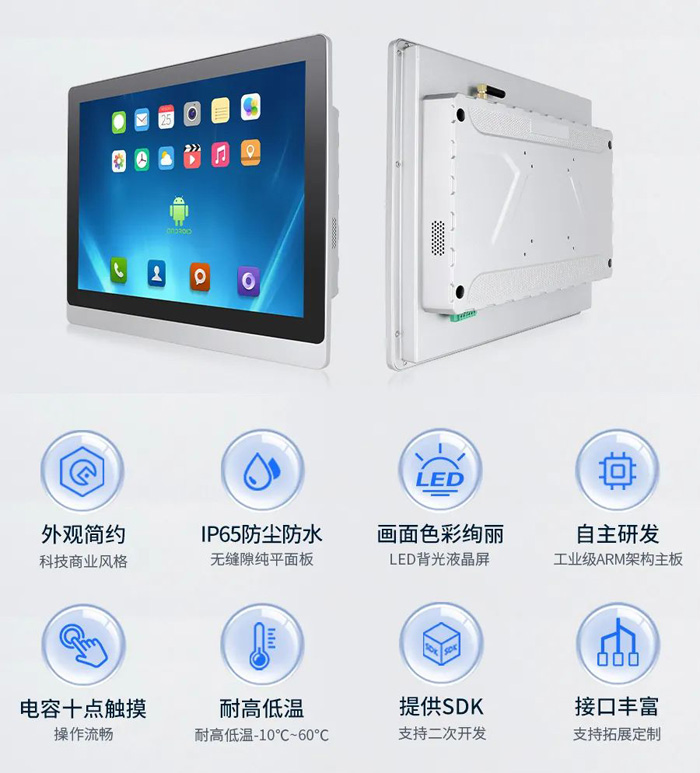 技術與性能升級,不僅提高了安卓一體機C款嵌入式系列的應用性,且拓寬了它的應用領域,在主要工業應用場景外,它還適配多種商業場景。