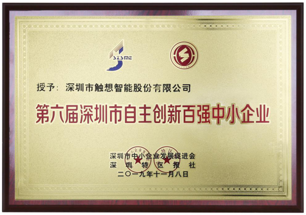 深圳市觸想智能股份有限公司(簡稱:觸想智能)憑借優異的自主創新實力,榮獲“深圳市自主創新中小企業百強”稱號!本次評選活動是經過審核評估組專家前期的實地考察、聽取自主研發創新的工作匯報、與研發人員的技術交流、了解產品的核心競爭優勢以及企業的未來發展規劃等工作進行了全面的評估,在近3000家報名企業中,經過嚴格的評選程序脫穎而出,成為深圳市200多萬中小企業的優秀代表之一!
