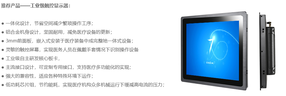 醫療衛生關系著千千萬萬人民的健康生活,醫療行業的特殊性,常常遇到醫療機械設備,要求其應用的觸控設備需具有操作簡便精確,耐酒精消毒擦拭清洗,并需要支持佩戴手套可操作等特點。